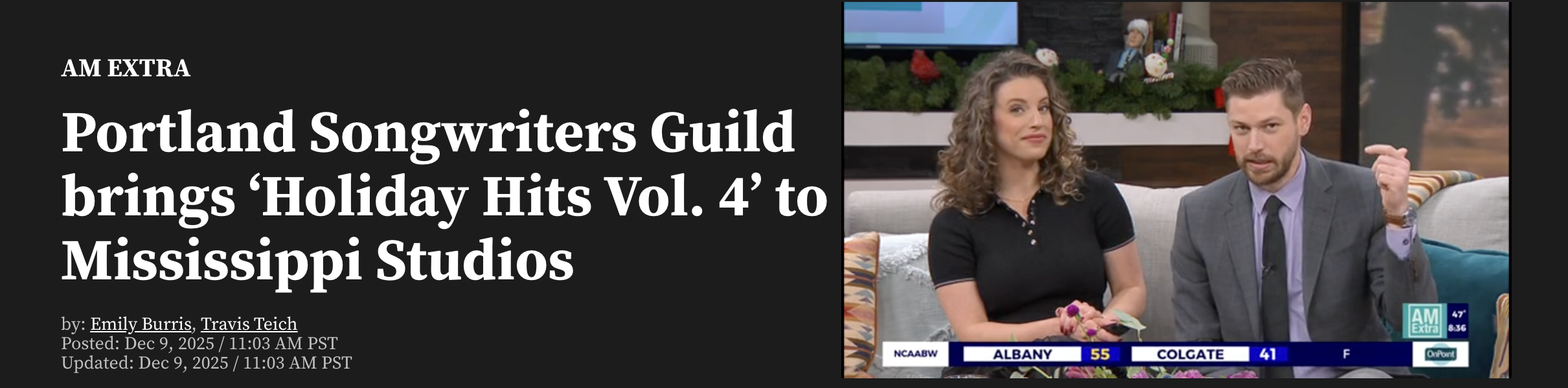 Holiday Hits Vol. 4 presented by Portland Songwriters Guild is happening Wednesday, Dec. 10, 2025 from 7 to 11 p.m. at Mississippi Studios. Tickets are $15 in advance and $20 day of show.
